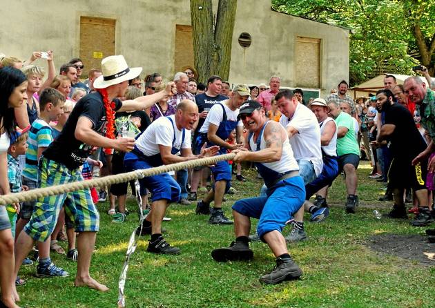 Markee/Nauen (MZV). Mit äußerster Kraftanstrengung wurde um jeden Zentimeter Anger-Rasen gekämpft, minutenlang und unter den Anfeuerungsrufen von mehreren hundert Zuschauern. Schließlich hatten die starken Männer des gastgebenden Nauener Ortsteiles Markee beim alljährlichen und immer spektakulären Tauziehen dieses Mal gegen die sich tapfer wehrenden Mannen aus Lietzow die größeren Kraftreserven.